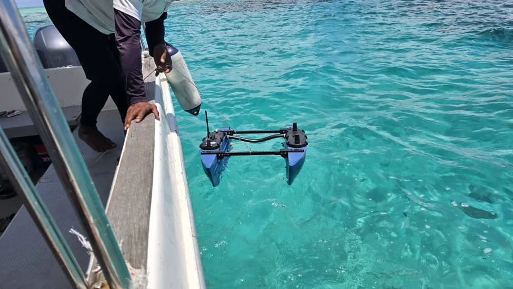 Terence Lim and Stop Fish Bombing Malaysia have started our ocean testing of BlueBoat #1 - AKA Mata Laut (“Eyes of the Sea”).